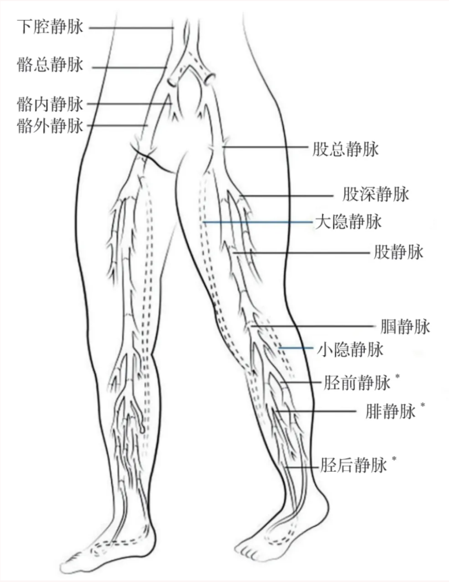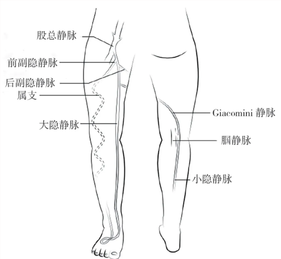 图3 下肢深静脉和主要浅静脉(大隐静脉和小隐静脉)的解剖。