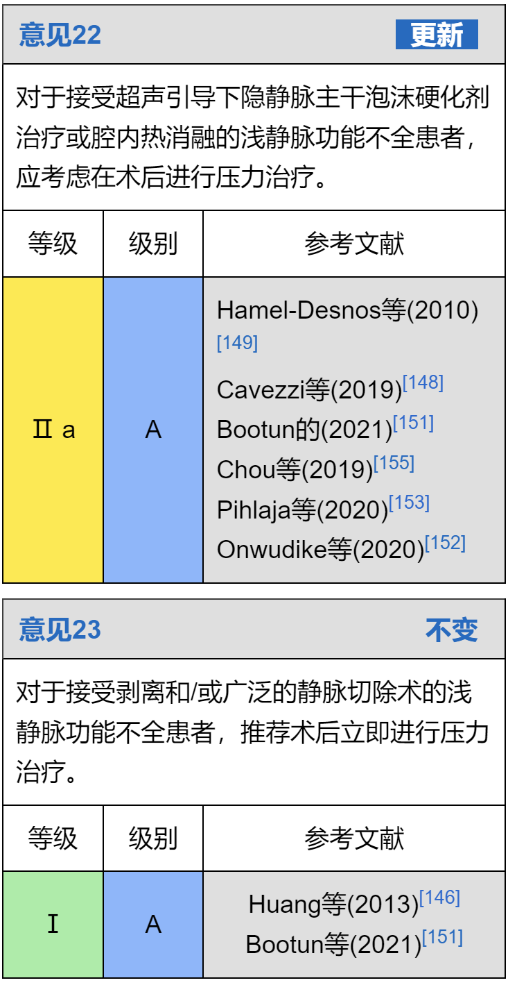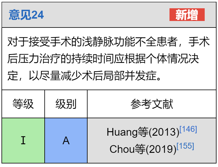 深静脉手术后通常会开具压缩治疗处方,但其有效性的数据稀缺。然而,在侵入性治疗后症状持续存在时,推荐进行压缩治疗(见第3.2小节和图6)。