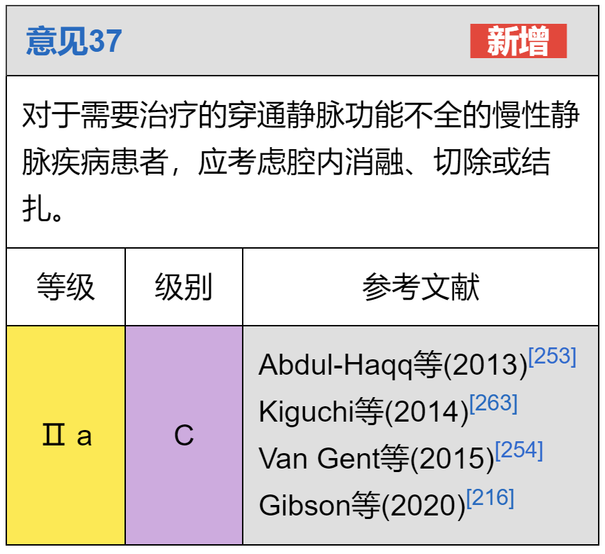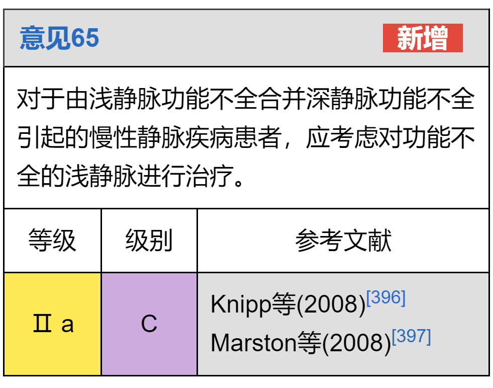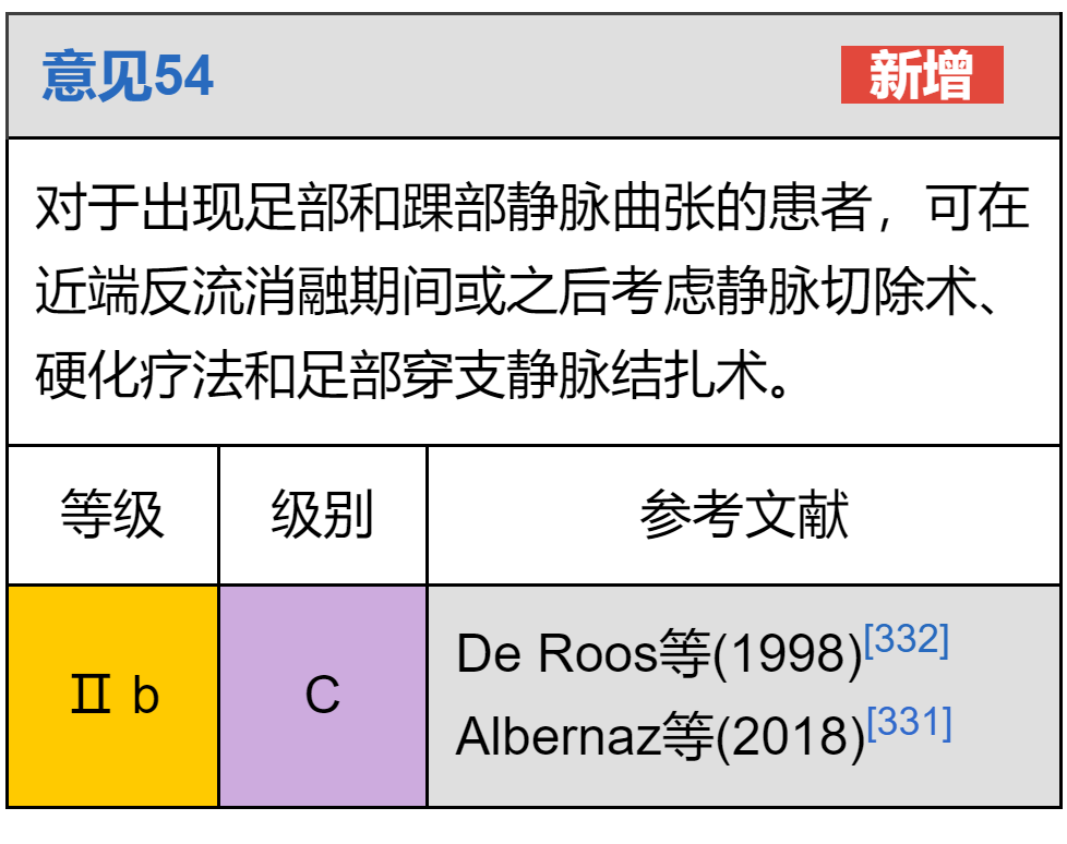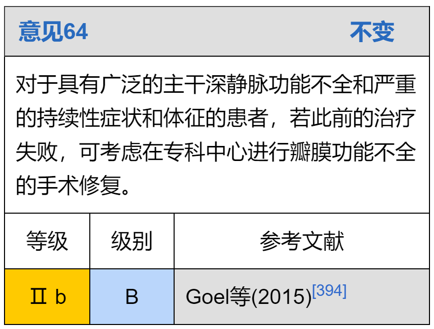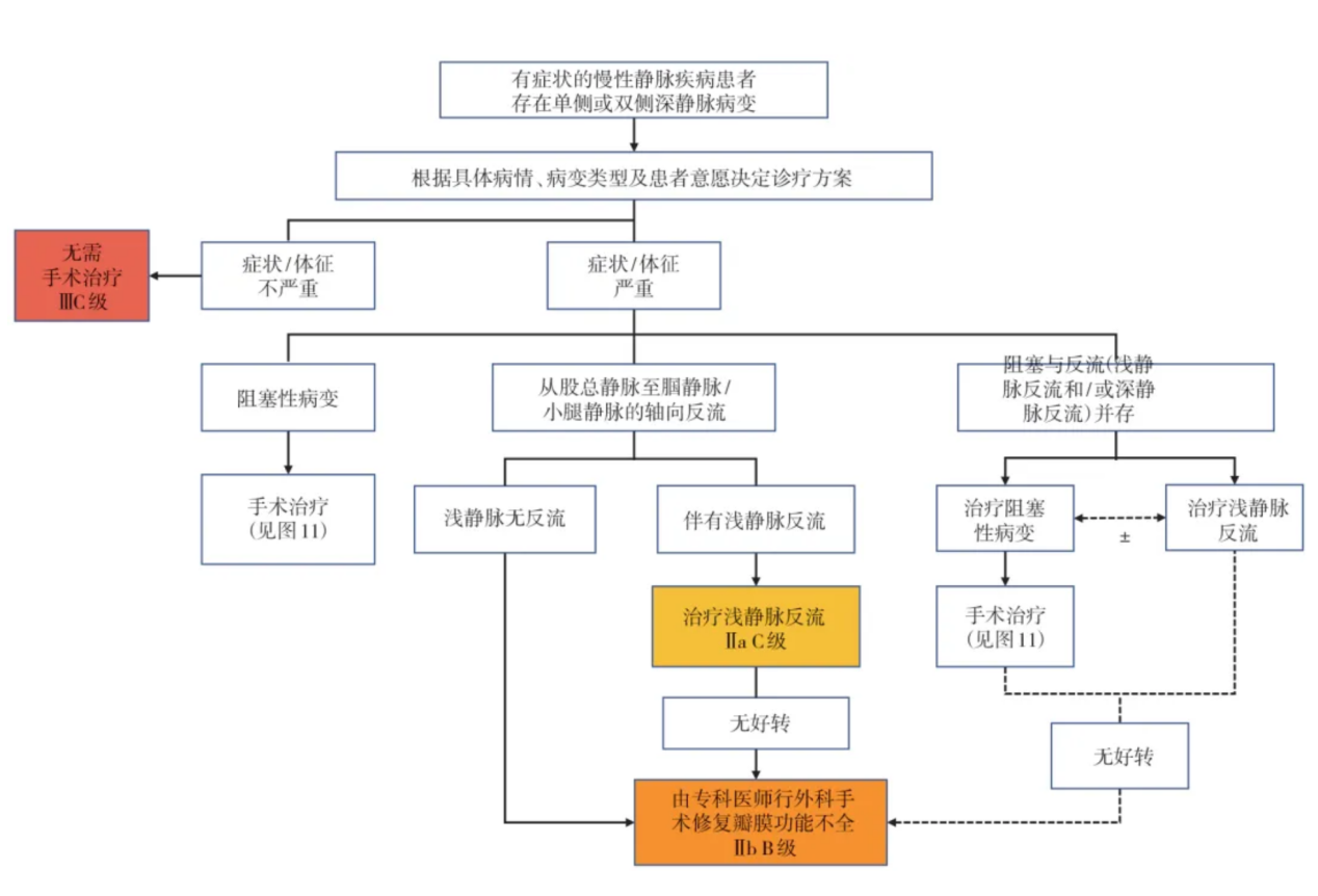 最后,仅有那些存在广泛的主干深静脉功能不全以及持续严重症状和体征的患者,在所有先前的治疗策略均失败后,最终可能会被转诊到专门的中心进行瓣膜功能不全的手术修复。