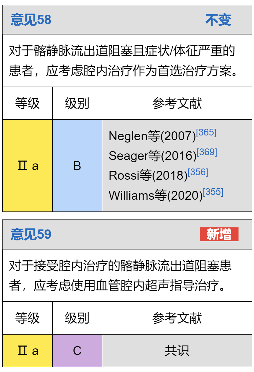 综上所述,尽管几项研究表明经腔内治疗CVD具有相对益处,但这些研究,包括比较髂静脉支架植入与药物治疗的随机对照试验[356],都存在重要的系统误差,主要是患者选择和治疗选择偏倚。然而,这些研究支持在适当选择这些患者时,在慢性静脉外流阻塞的患者中,进行经腔内治疗的作用。