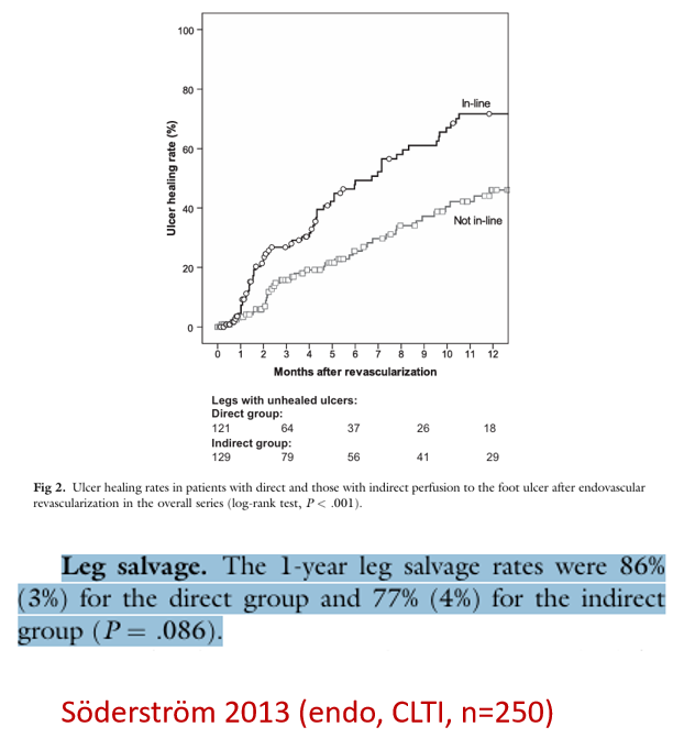 多项研究显示,按照Angiosome理念进行靶血管直接开通的患者,在保肢率和伤口愈合率方面显著优于间接开通组。