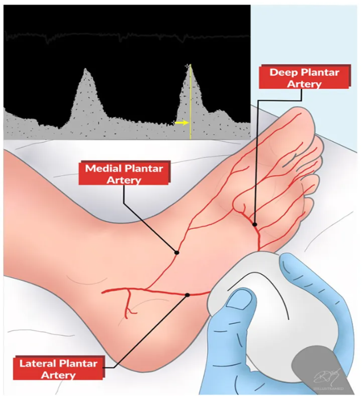 主要测量足底外侧动脉的充盈速度和时间,反映微循环通畅性。具有无创、可重复、客观等优点,但依赖操作者的超声技术。