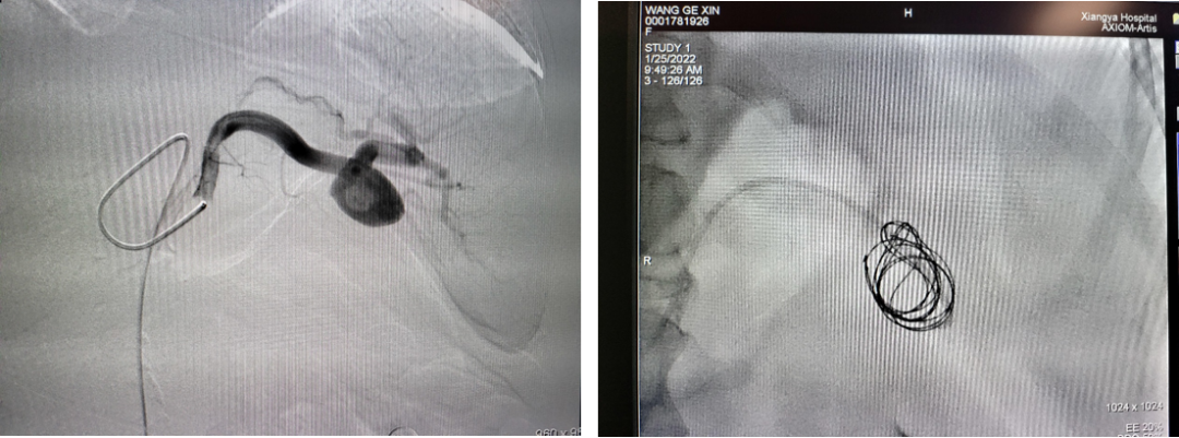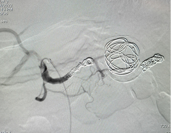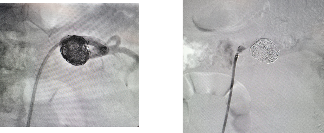为了动脉瘤尽早血栓化,也可瘤腔填塞部分弹簧圈