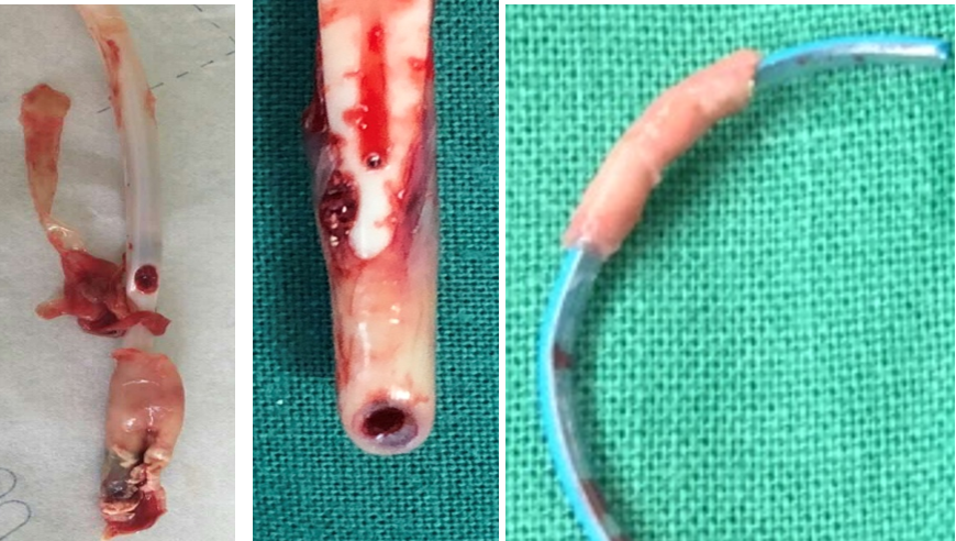 在弯曲部位易发生弯折(Kink),造成管腔闭塞。