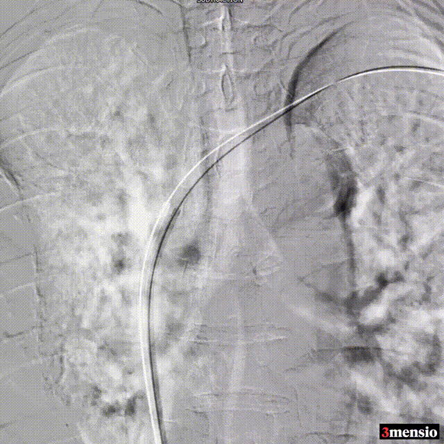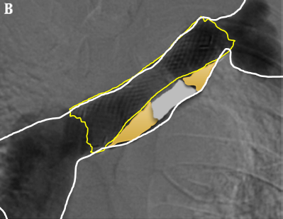 术后:支架定位困难,未能完全覆盖病变