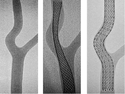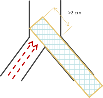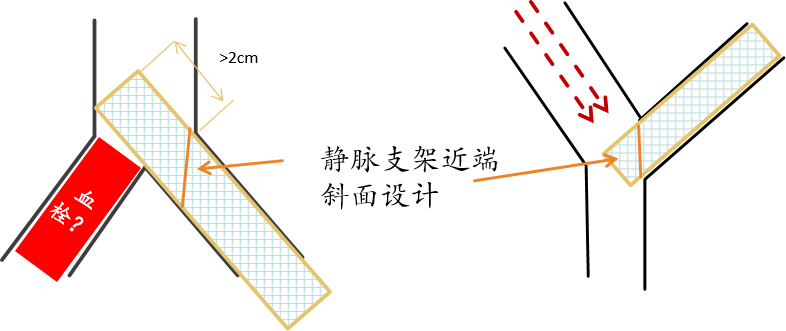 图:平头支架与斜面支架在静脉分叉处的效果对比