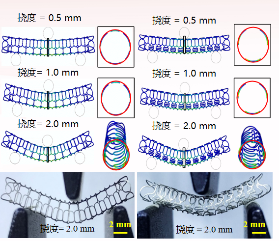 通过建立支架柔顺性与结构参数(如连接单元、支撑单元的形状和分布)之间的数学模型,可以进行针对性的结构设计创新。研究通过模拟不同挠度(如0.5mm, 1.0mm, 2.0mm)下的形变,优化支架端部、主体结构和过渡部分的设计,从而显著提高其弯曲和扭转的顺应性。