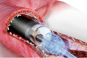 第二步:稍大直径球囊使斑块纵向断开。