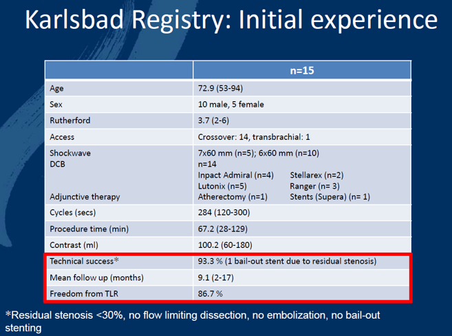 临床数据:Karlsbad注册研究早期结果显示,该技术安全有效,技术成功率达93.3%,随访期间无靶病变血运重建(TLR)率为86.7%。