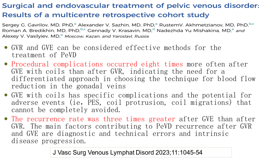卵巢静脉分支遗存以及髂内静脉反流是复发的主要解剖原因。