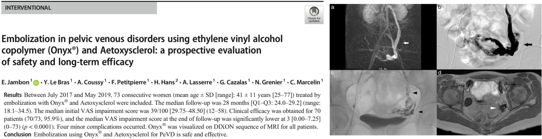 若存在 症状性盆腔静脉扩张(PEP),应 同期栓塞髂内静脉。