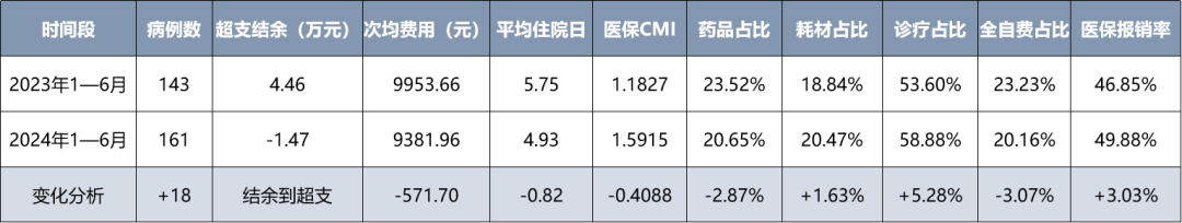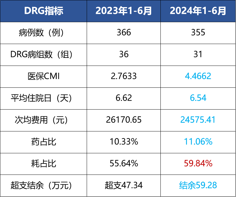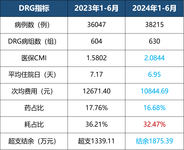 2024年1-6月,全院在DRG管理下展现出积极态势: