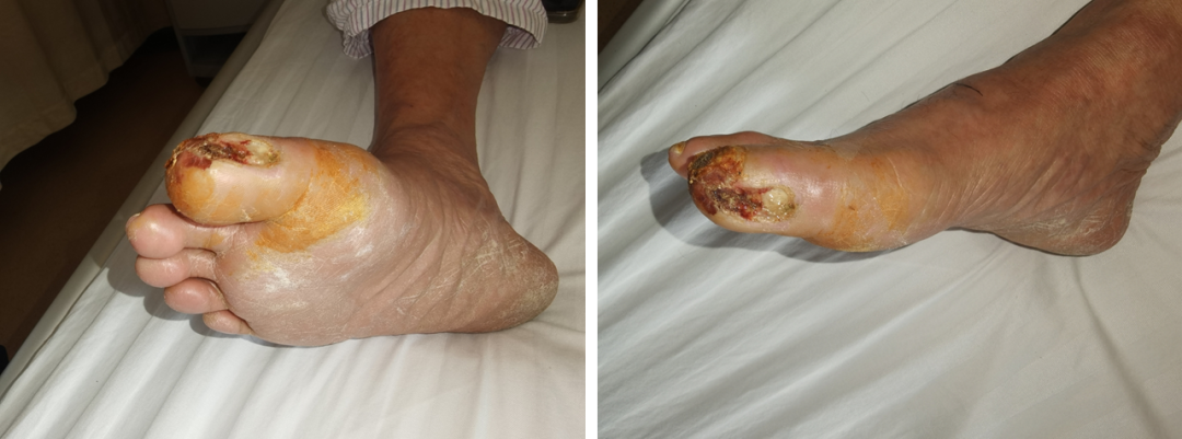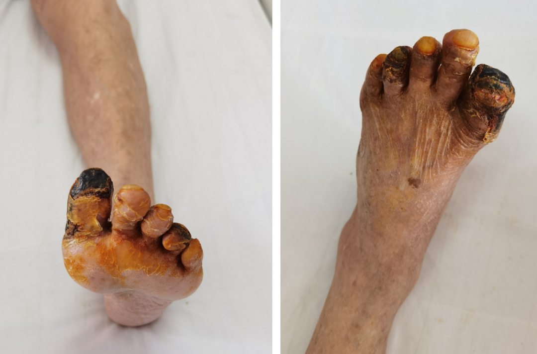 Wound, Ischemia, and foot Infection (WIfI) Stage 4:W2I3FI1 (Risk of amputation: High)