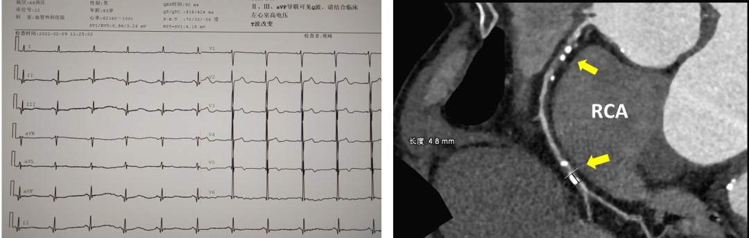 冠脉CTA:右侧冠状动脉中段重度狭窄;远段中度狭窄(50%)