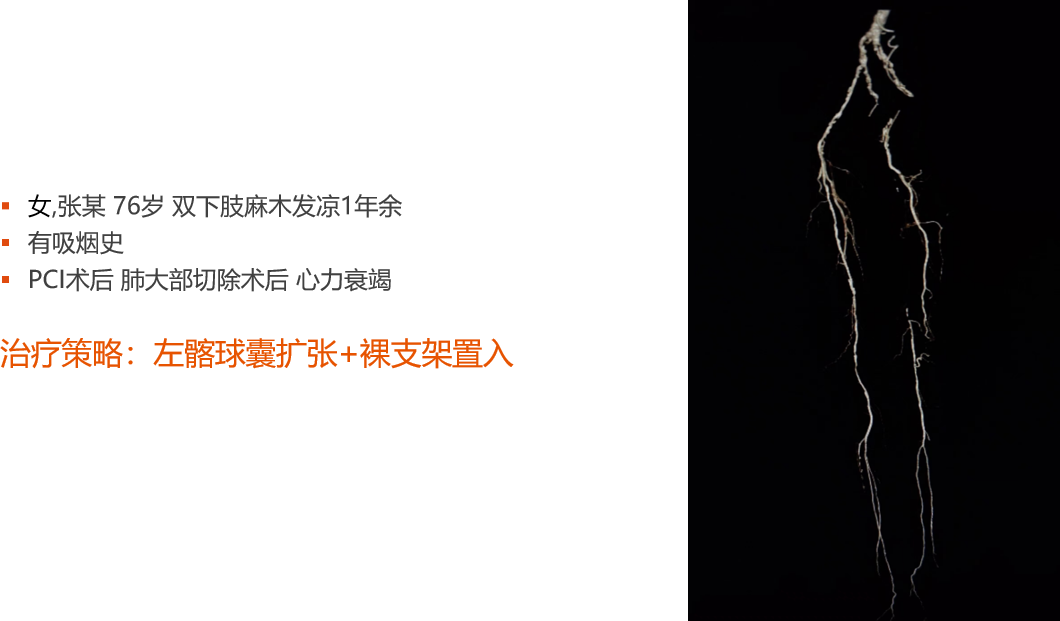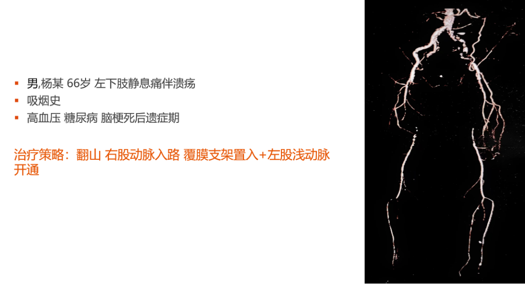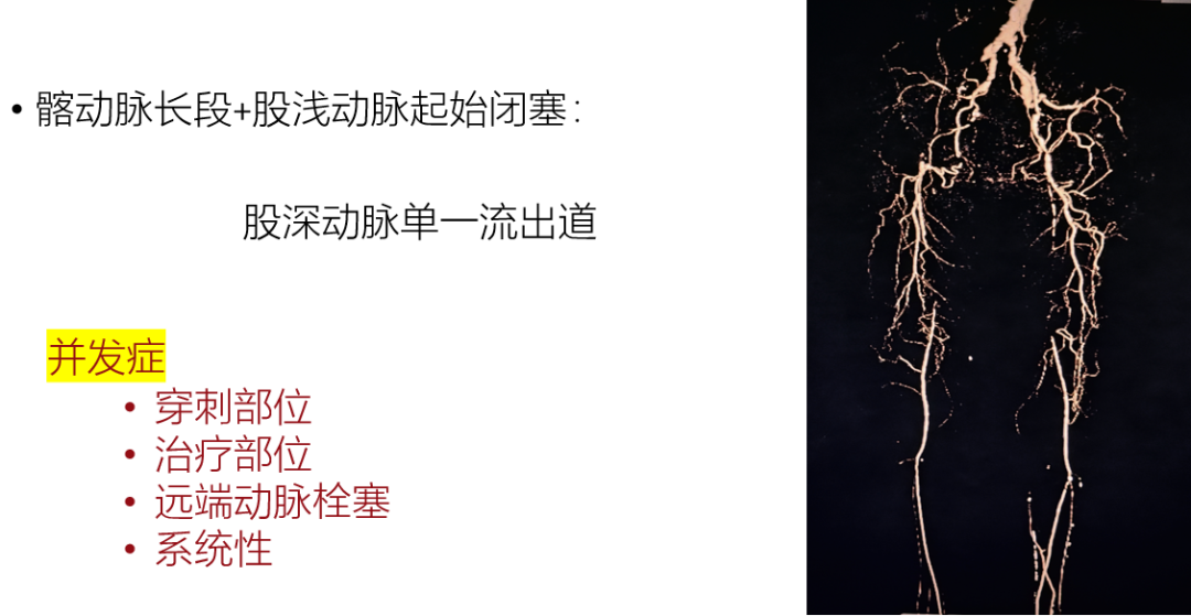 3.需要仔细评估流出道血流,预防支架血栓形成,选择性一期开通股浅动脉