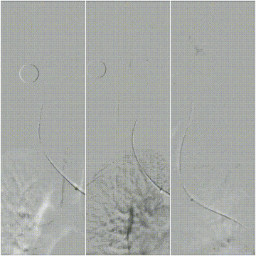 图:术中CTA图像指导导丝导管方向