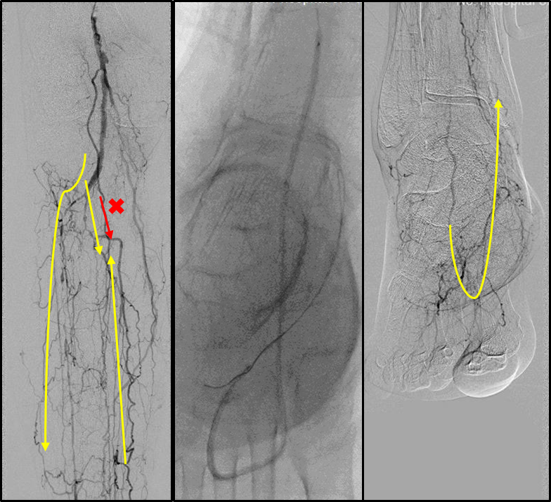 部分患者存在踝上交通动脉或完整的踝下足底弓,为逆向开通提供可能。