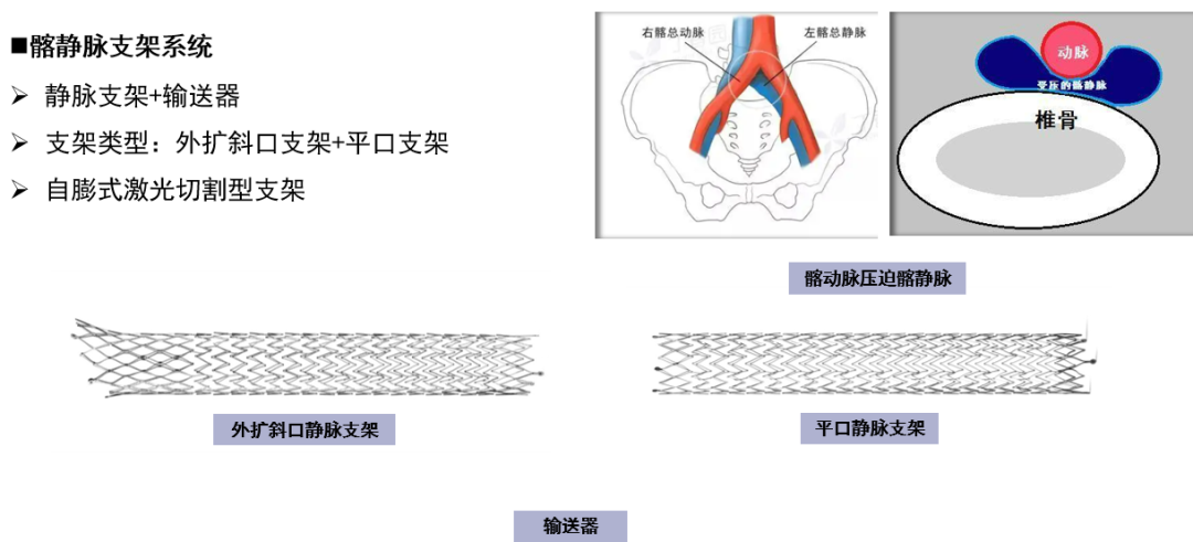 近年涌现较多的国产髂静脉支架,总体来说设计理念新颖,有一定的创新性,解决了以往常见的进入下腔静脉过多、跨病变长度不足,支架定位不准及移位等一系列问题