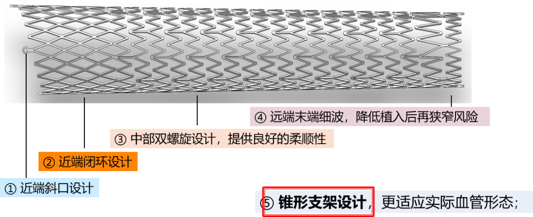 因锥形设计,远端尺寸小,支架选择困难,远端易出现支架“悬空”现象