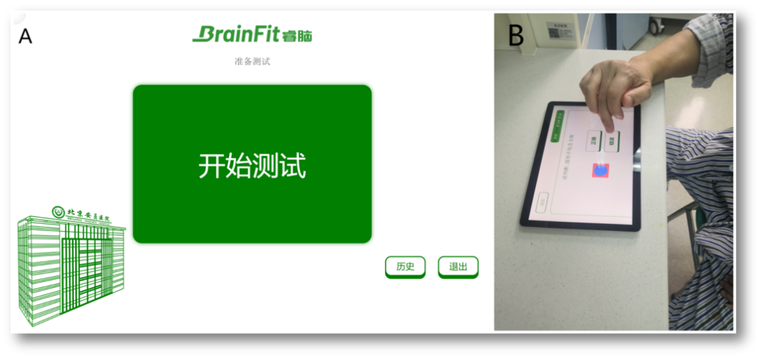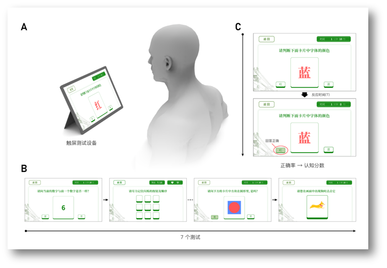 B.在设备上显示的一系列7个认知测试(部分)