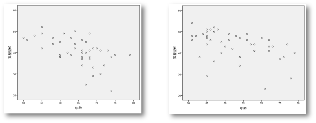 年龄与测试评分的线性回归分析