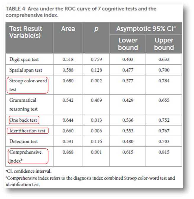 鉴别测试要求被测试者集中和保持注意力,尽快和尽可能准确地执行任务,涉及注意力的警觉、定向和执行等功能