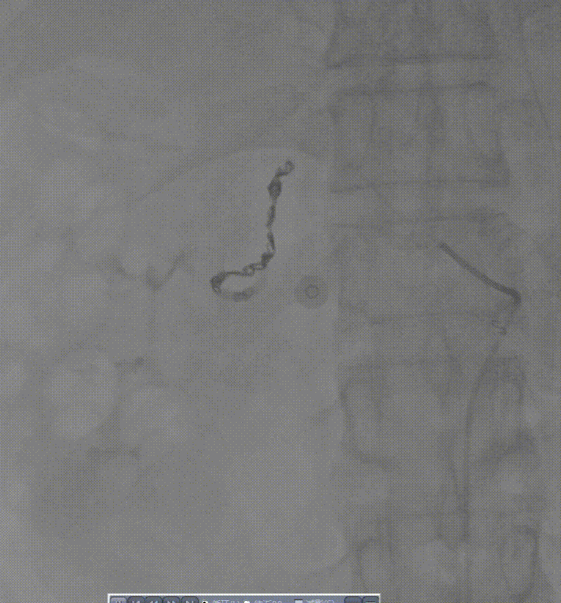 ★ 病例1:十二指肠溃疡出血:超选造影发现外溢,弹簧圈联合微球栓塞成功止血