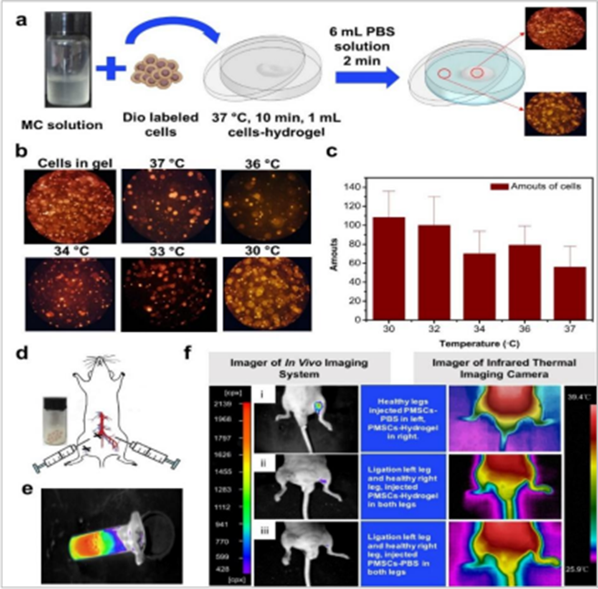 • 开发可逆温敏水凝胶,在低温(如缺血肢体)下启动干细胞释放;