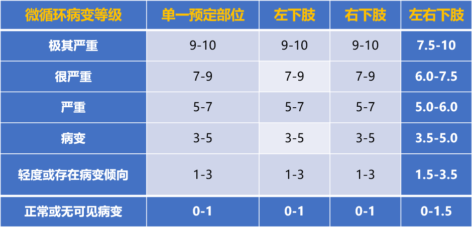 建立量化评分标准(0–10分),可客观判断微循环病变等级;