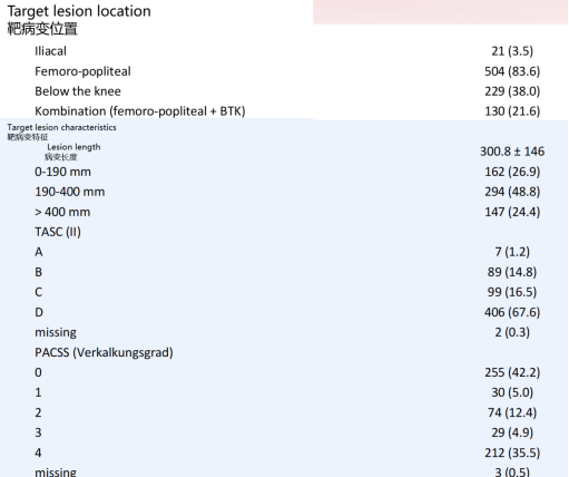 既往手术史:高达37.2% 的患者目标肢体曾接受过开放血管手术(如搭桥、血栓内膜切除术),这意味着局部解剖结构改变,瘢痕组织增生,增加了穿刺和通过的难度。