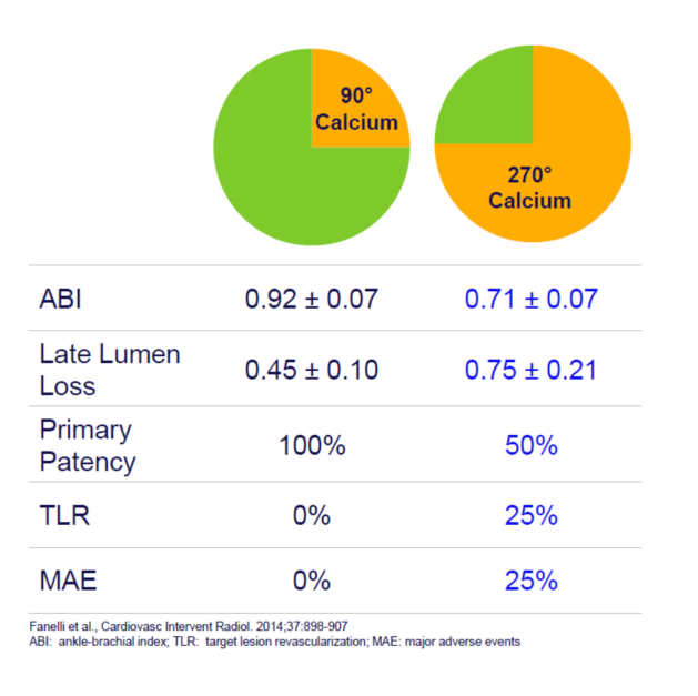 图:钙化程度对股腘动脉介入治疗效果的影响:90°与270°钙化对比