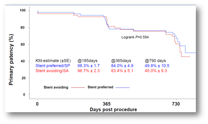 目标:尽可能避免永久性植入物。此策略对血管准备的要求极高,需要达到残余狭窄轻、无限流夹层。若准备不充分,易导致早期管腔丢失。
