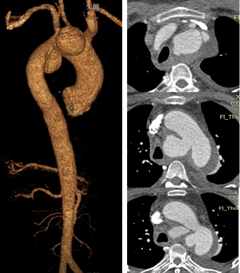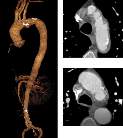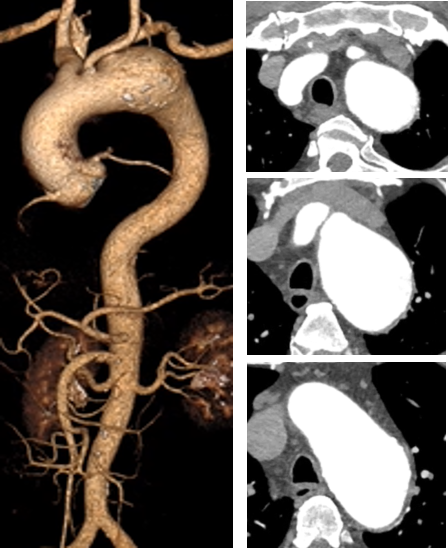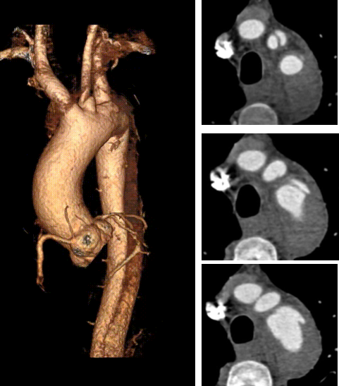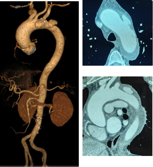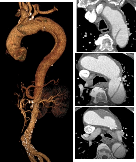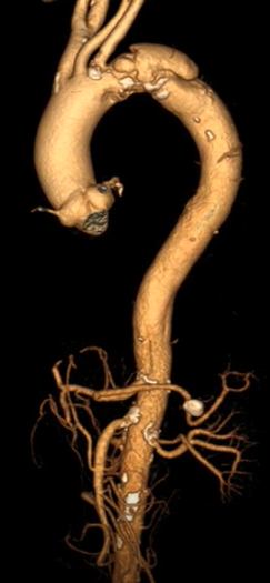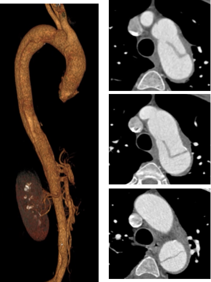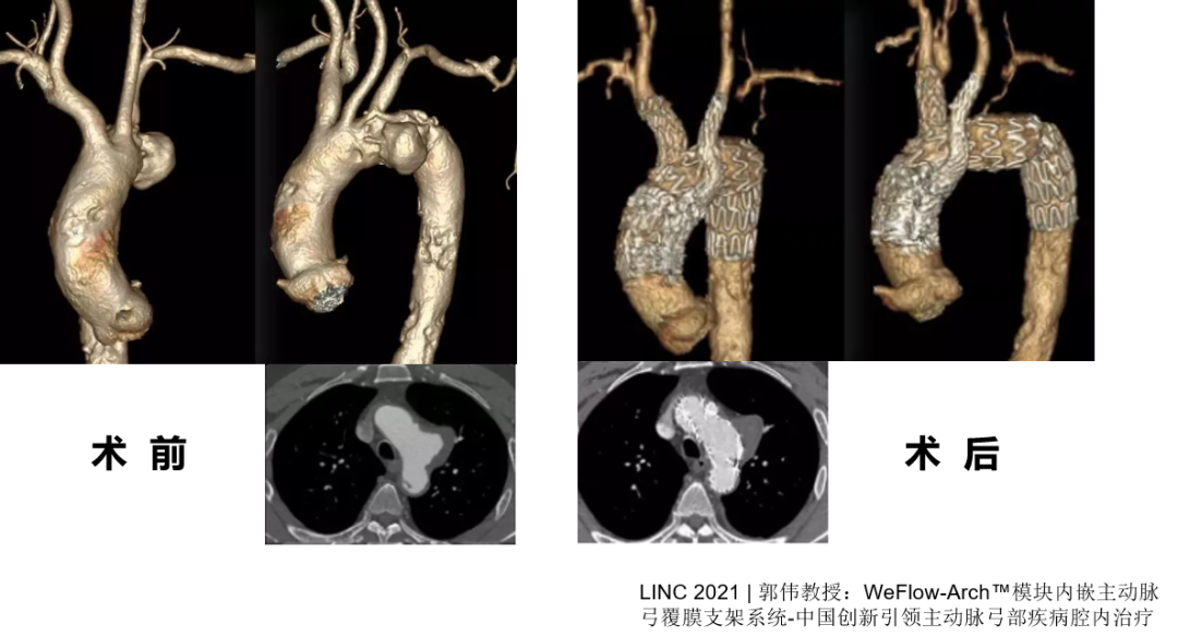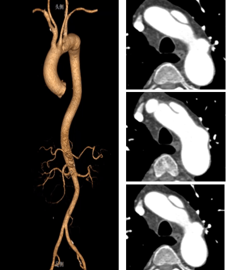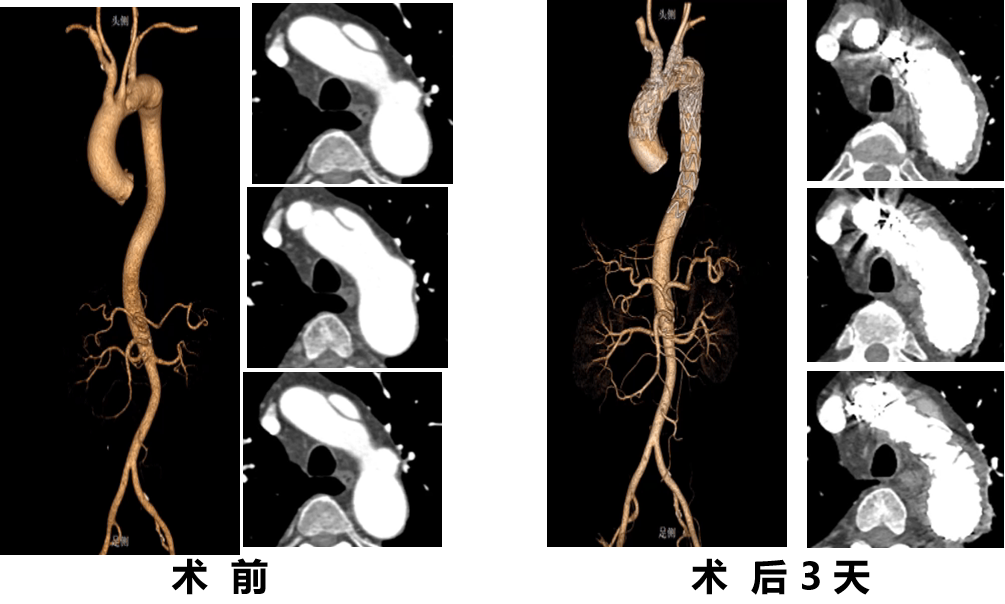王某,男,67岁,“查体发现主动脉弓部动脉瘤7天”入院,主动脉CTA提示:主动脉弓部夹层动脉瘤。