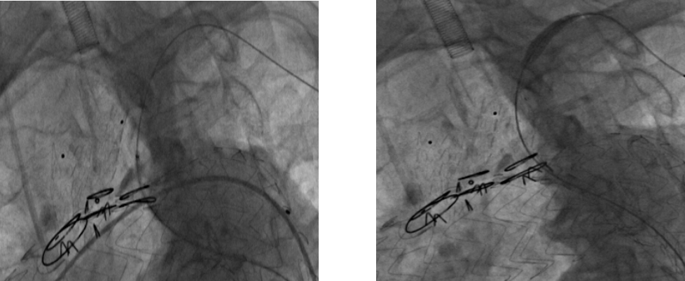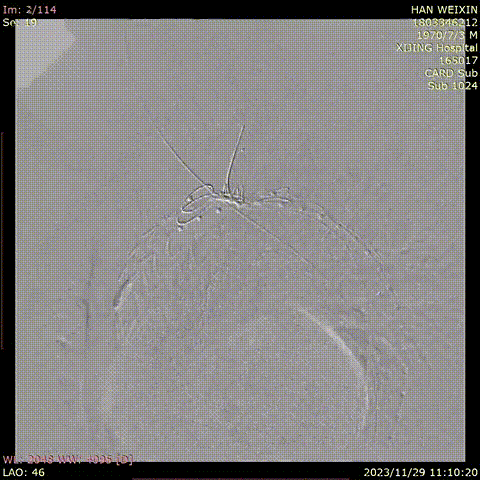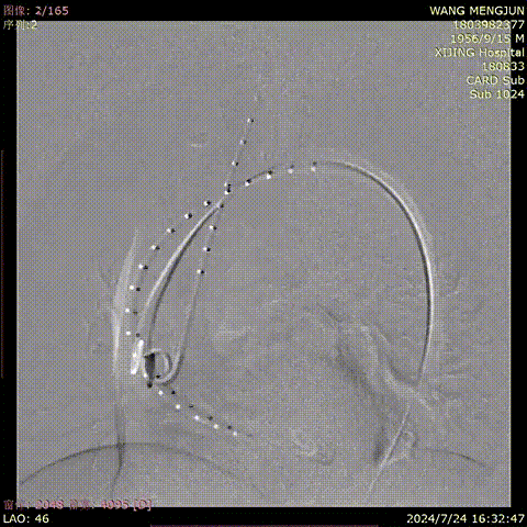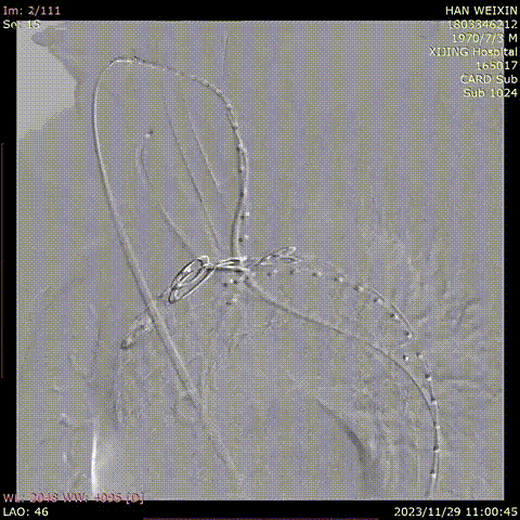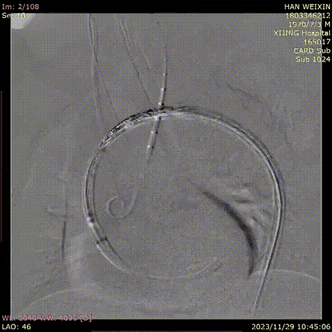 利用自适应性成功超选左颈总动脉,并置入分支支架