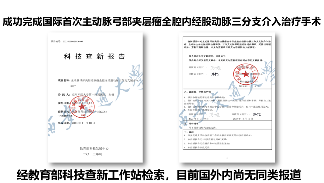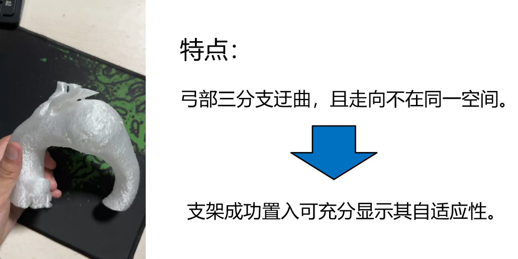 具备强大自适应能力,即使主体支架窗口与分支血管存在较远错位,仍可通过支架结构容错性完成精准植入。经科技部查新确认,该技术方案国内外均无类似报道,具有显著创新性。