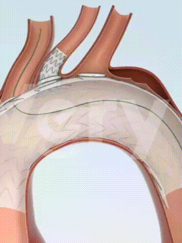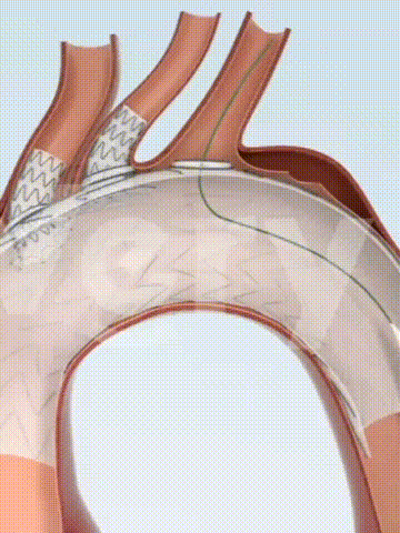 (2)安全从容一一主体释放后可确保弓上分支血管通畅,供血不受影响,医生可从容进行分支重建;