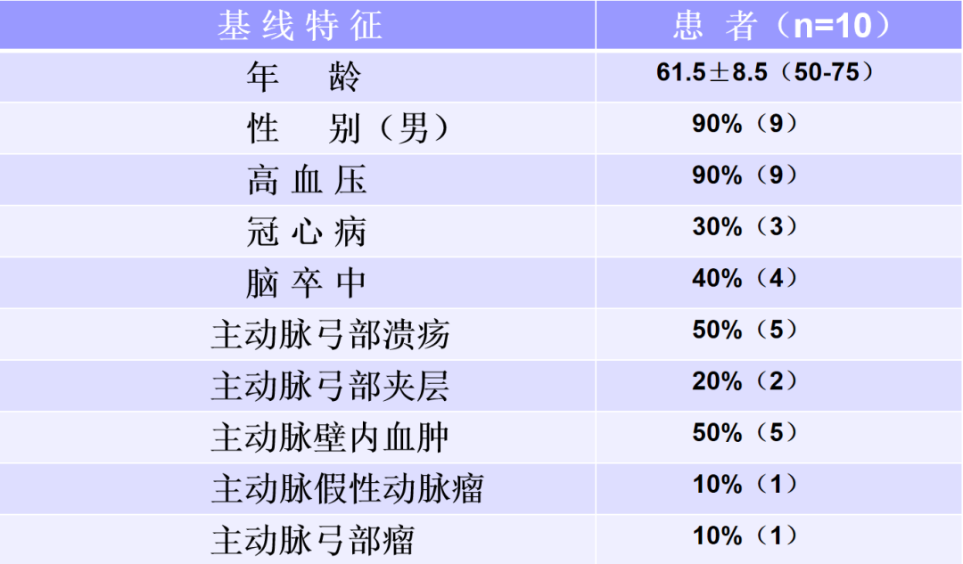 曹某,男,74岁,“胸背部疼痛10天”入院,主动脉CTA提示:主动脉弓可见多发穿透溃疡,较大之一径约1.2cm。高血压病史10年,血压最高190/80mmHg,糖尿病史12年。