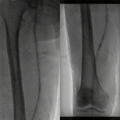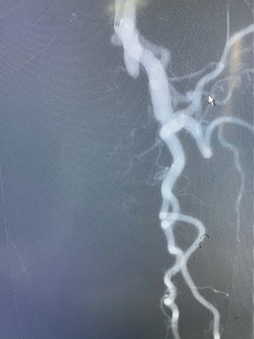 图:胫腓干夹层,置入3.5mm*35mm药涂支架(冠脉支架)