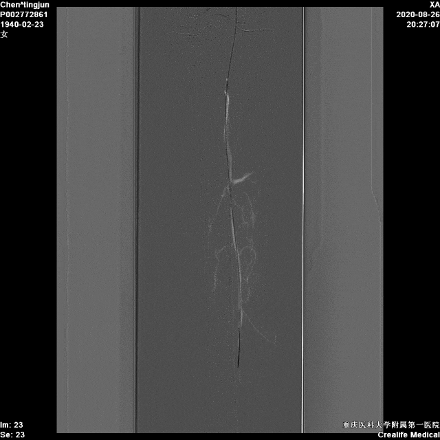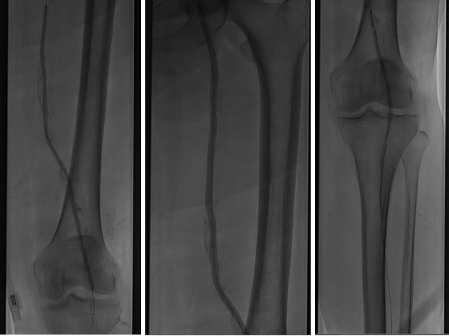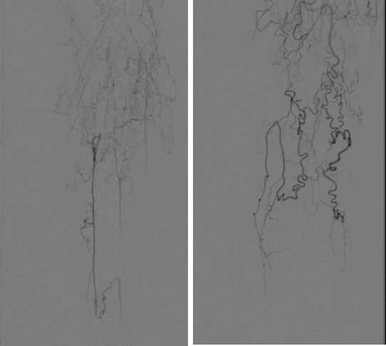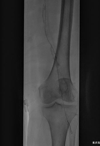 图:造影显示,股腘动脉全程闭塞,膝下流出道差