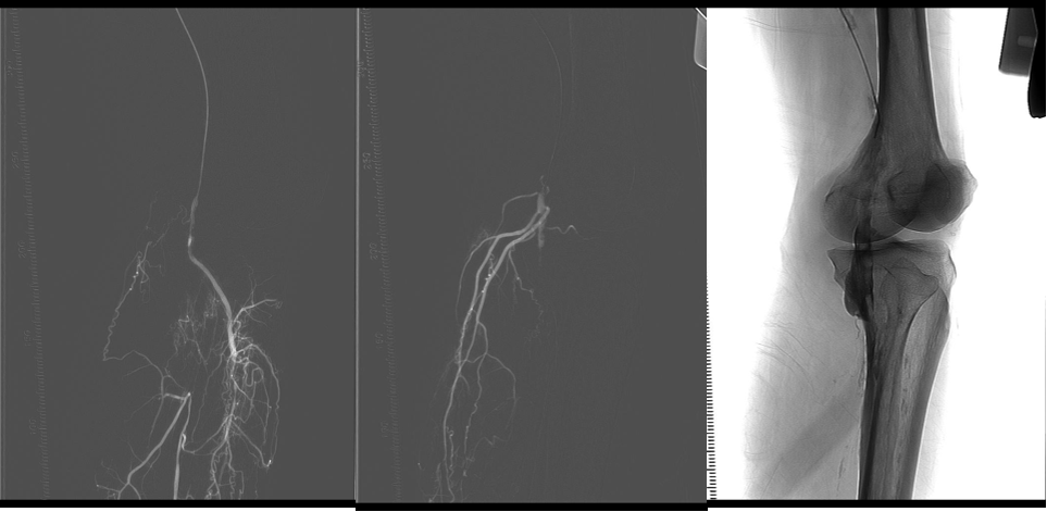 图:术后造影示股腘动脉、腓动脉及足部动脉显影好