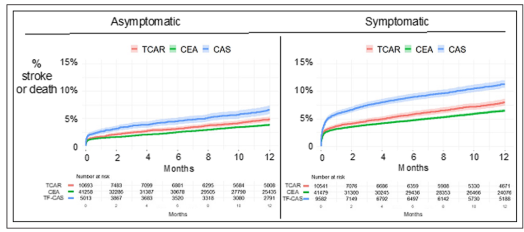 图:TCAR在卒中、死亡、TIA等方面优于CAS,与CEA相仿