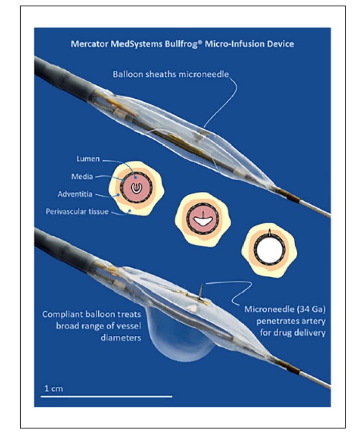 除了球囊涂层,药物递送方式也在创新。“牛蛙球囊” 采用微注射针,在扩张时间血管外膜下直接注射替西罗莫司。II期临床研究显示,其在降低CD-TLR方面优于注射盐水的对照组,目前已计划进入III期研究。这为药物递送提供了“由内向外”的新思路。