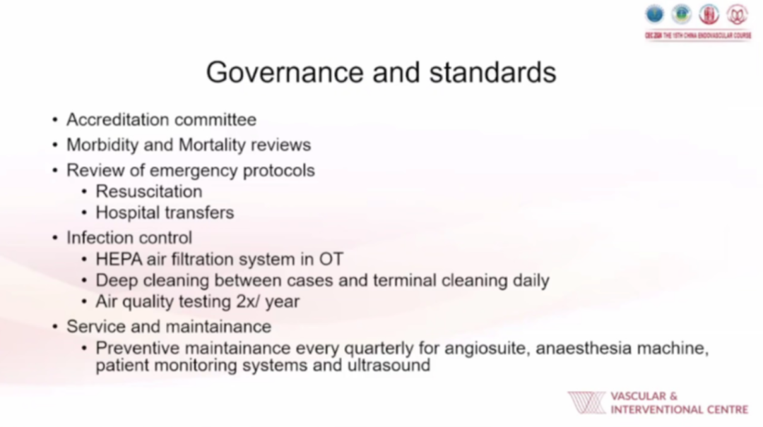 日间手术中心通过完善的治理与标准体系保障运营安全规范:一方面,设立认证委员会,定期开展发病率和死亡率(Morbidity and Mortality)审查、急救流程(涵盖复苏、医院转诊)审查;另一方面,在硬件与维护上严格要求,手术室配备HEPA空气过滤系统,病例间隔期间进行深度清洁且每日开展终末清洁,每20例病例需进行空气质量检测,同时每季度对血管造影机、麻醉机、患者监护系统、无影灯等设备实施预防性维护。