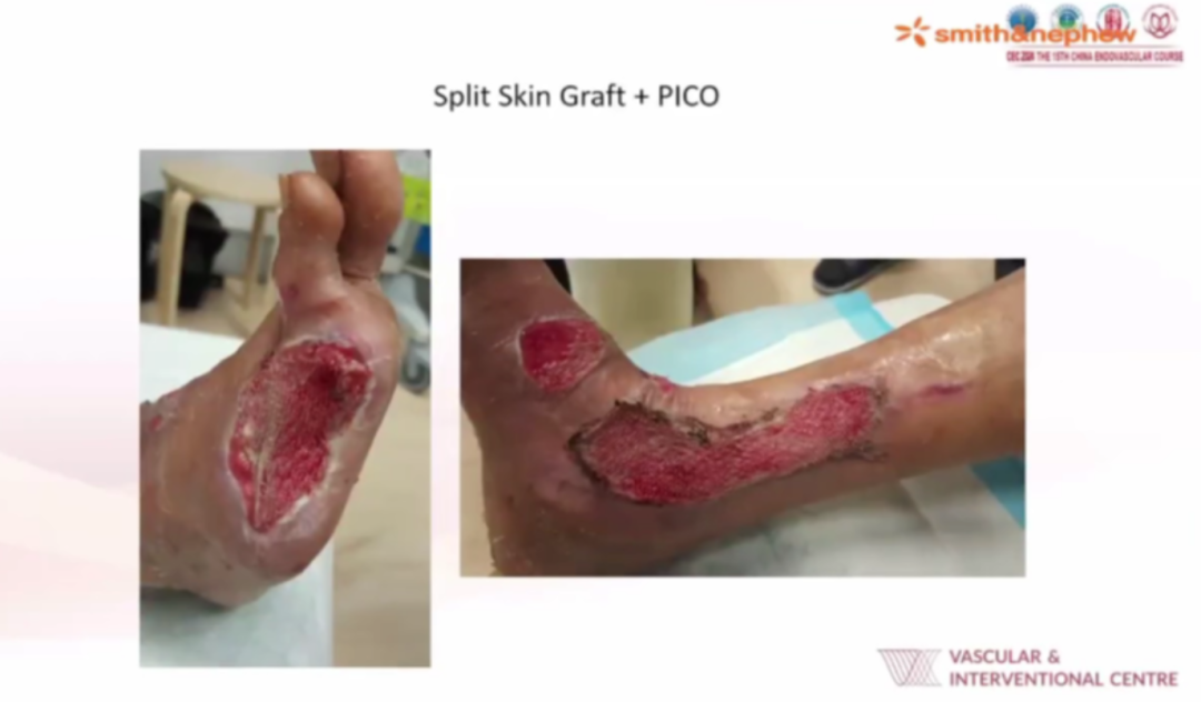 Split Skin Graft+PICO:结合断层皮片移植+PICO负压,帮助大面积伤口的皮片存活与愈合;