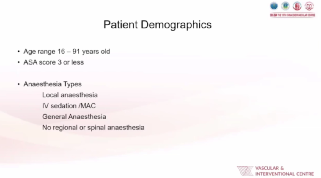 从病例基线与增长趋势来看,纳入患者年龄跨度为16-91岁,且ASA分级均≤3级,说明患者基础疾病可控,具备较好的手术耐受条件;麻醉方式以局部麻醉、静脉镇静为主,不采用区域或脊髓麻醉,契合日间手术“快速恢复、当日出院”的特点。病例数量呈明显增长态势,2021年完成150例,2022年增至350例,手术类型涵盖外周动脉疾病(PAD)血管成形术、静脉曲张治疗、勃起功能障碍介入等,其中复杂CLTI病例占比逐步提升,体现出日间手术模式在复杂病例中的应用持续拓展。