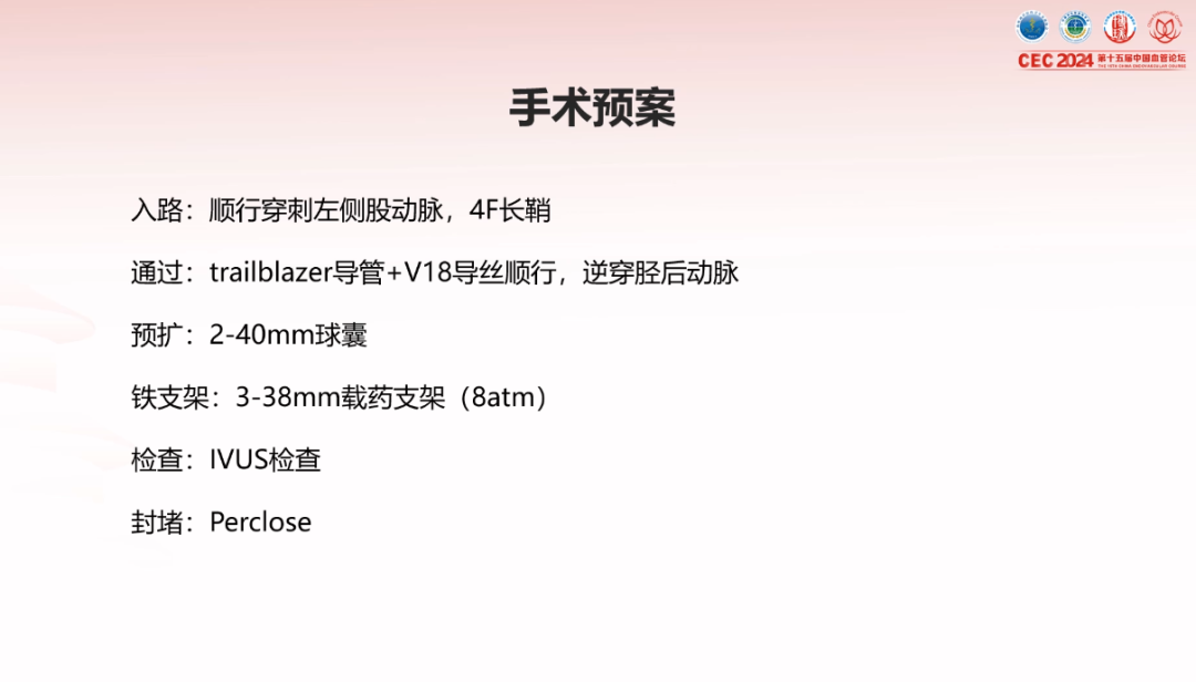 拟采用顺行穿刺入路,通过导丝开通闭塞病变后,以普通球囊预扩张,再植入球囊扩张式铁基可降解支架,最终通过腔内超声评估手术效果。