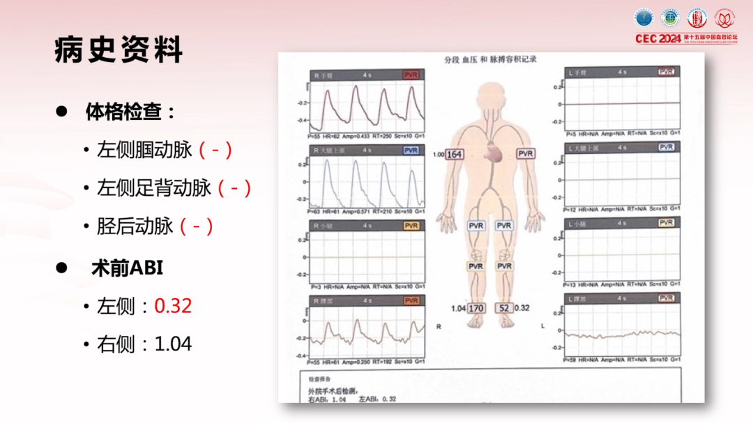 ABI(踝肱指数):左侧0.32(严重缺血),右侧1.04(基本正常);