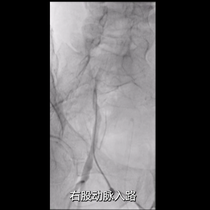 采用右侧股动脉入路,穿刺股总动脉后行基线造影;