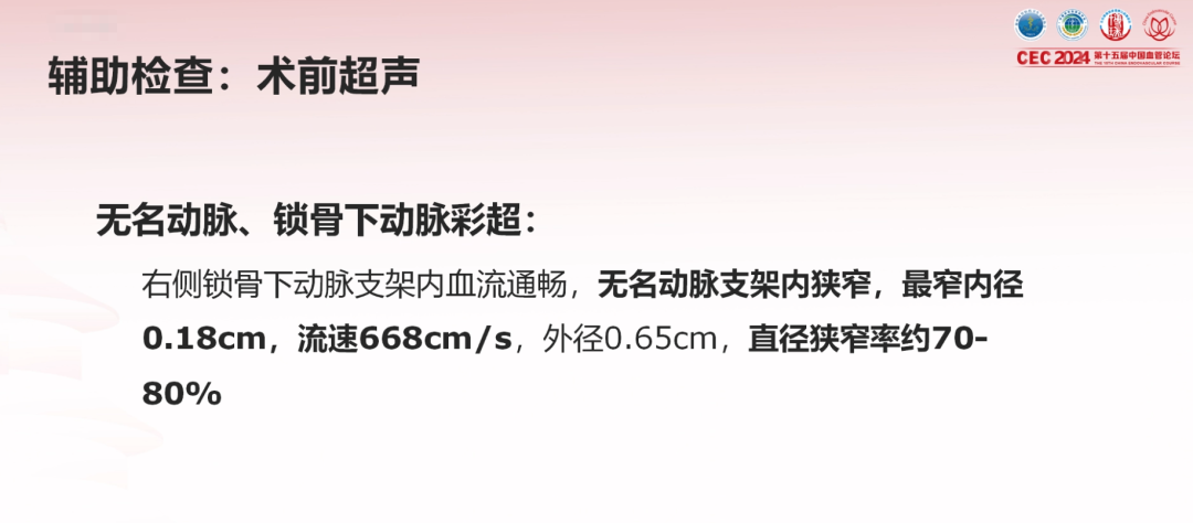 患者信息:72岁男性,因“无名动脉支架术后3年,支架内再狭窄6月余”就诊。