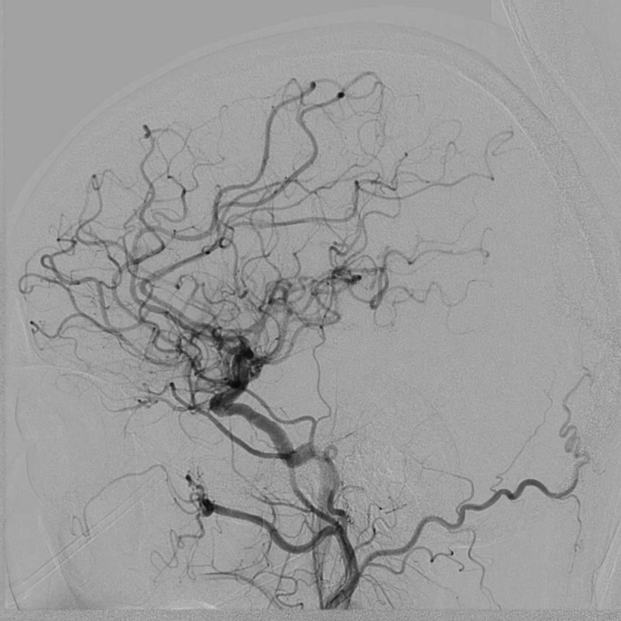 颅内血供:左侧颈内动脉血流通畅,因右侧闭塞,左侧成为全脑主要供血通路,血供恢复满意